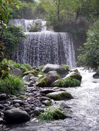 程好く時間経過した8時過ぎ、9寸程だが鼻曲りの雄イワナをキャッチ。カッチョいい!!ペアリングしていたのか、もうひと回り大きな個体も居たが掛けそこなった(汗)。 数枚の写真を撮影後、彼女の元へお帰り頂いた(笑) この魚で満足できた。そろそろ戻ろう。 結局雨は降らず、多少湿度は高かったが、快適な釣りが出来た。 ちょっと辛いのは、ここまで登ってきた道程を引き返す事。 道無き道を行くとレインウェア&ウェーダーは泥だらけ。 汚れ落しに堰堤直下シャワータイム。 気持ちいぃー!最高っ!! |