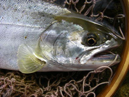 | AM4:00。 セットしていた目覚ましの音で目が覚める。 屋外は結構な大風の模様。 煙草を吸いながら行くか止めるか思案する。 「あのポイントでこの向い風は辛いよなぁ・・・。(汗)」 まぁ折角起きたんだし、ダメで元々。 出掛けることにした。 んで、想定ポイントやっぱりダメだった(笑) 30分と持たず移動。 某所で40うpのギンケヤマメを間近で観察(?)後、 下流域での最小記録更新魚をキャッチ(笑) ![]() 薄っすらパーマークも確認できるお魚でした(^^; (あれ、何時の間にやら大風も治まってきたよ) その後は行く先々で沈黙(焦) チェイスすら無い(大汗) GW中に教育が行き届いた模様です(泪) 「纏った雨が降るまで暫く釣りはお休みしようか・・・」 な〜んて弱気な考えをしていると 「ゴンッ!」 ![]() 久々に良い引きを味わえました(感謝) ![]() でもイマイチ納得いかないのであった。 本流では35うp欲しいです!←めちゃ贅沢ですが本音。 |