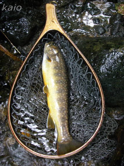 前日に中国地方を横断した台風11号。 当地は雨・風共に警戒していた程でなく、 釣りバカは喜び勇んでお山へ向かう(汗) ![]() 渓は普段より15cm増。 濁りは殆ど無いが、流れが強過ぎで、 明日あたりがベストの水況かもね。 今期絶不調のこの渓だが、 この状況なら、入れ食いも期待できるか!? ![]() 早々に1匹釣れたが、その後退渓ポイントまで2時間無釣果(大汗)。 先行者の痕跡も見当たらなかった事から、 単に魚影が薄くなったのだと思われる(悲)。 渓を移り、ここで唯一期待できる釜へ直行。 ![]() だが、水が多過ぎて厳しそう(汗)。 一投目。 押さえ付けられたような感触があったが、 急流に流されたルアーが、縁の壁に張り付いただけと理解。 2投目も同じ着水点・コースを流すが、今度は何も無かった・・・。 では先程の感触は何だったのか? 3投目は僅かだが又も違和感が・・・。 やはり魚だったのかもしれないが、 警戒して流石に3度目は期待できない(汗)。 ほぼ諦め、どうせならと流れ出し傍まで近付きキャスト。 着水後、ワンテンポ置いて茶色い影がルアーを襲うのが見えた。 ![]() 増水時の魚の抵抗は、いつもより力強いと感じる。 ![]() 奥出雲のコギらしい大きな斑紋。 ![]() う〜ん、満足(幸) 続いての渓では、MAX6寸だが入れ食いを堪能。 ![]() 増水時は本来こうでなきゃね! 最後に寄ったメジャー支流。 期待の大釜でチェイスしてきた尺絡み2匹は、何れもヤマメだった。 こんな上流にヤマメを放流するのは如何なものか? ・・・しかも何も釣れなかったし(汗) |