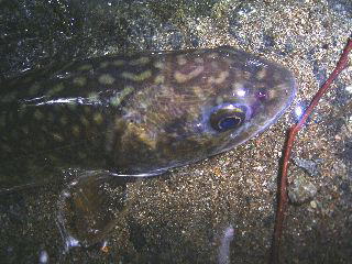 童子氏お得意のミノーでお見事!半銀化した8寸イワナキャッチ。
